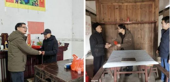 新春将至,岁寒情暖。为切实把党和政府的关怀与温暖送到群众心坎上。2月5日上午,江西省上饶市玉山县委常委、政法委书记吴雄跃,玉山县政协副主席许晓可一行来到樟村镇,分别走访慰问困难群众,玉山县民政局、玉山县退役军人事务局和玉山县应急管理局相关同志随同,樟村镇党委书记郑家兴,樟村镇党委副书记、镇长周瑶分别陪同。